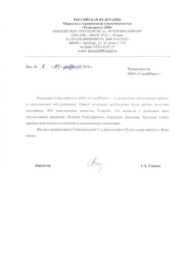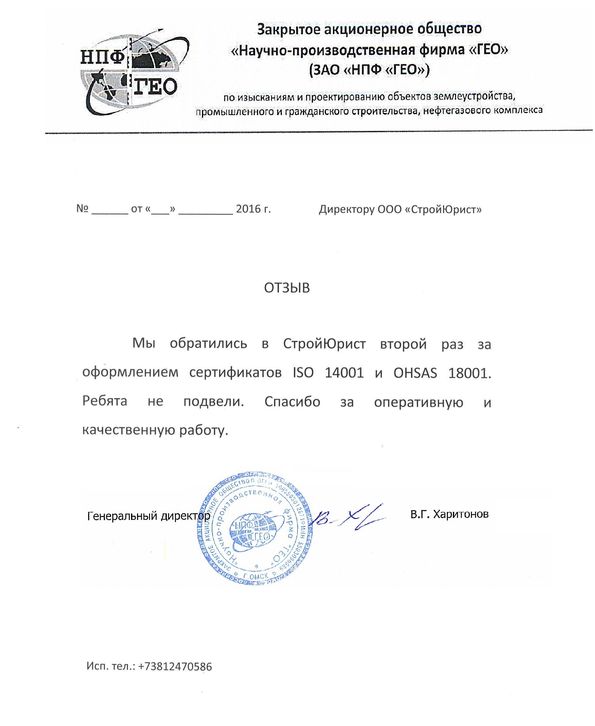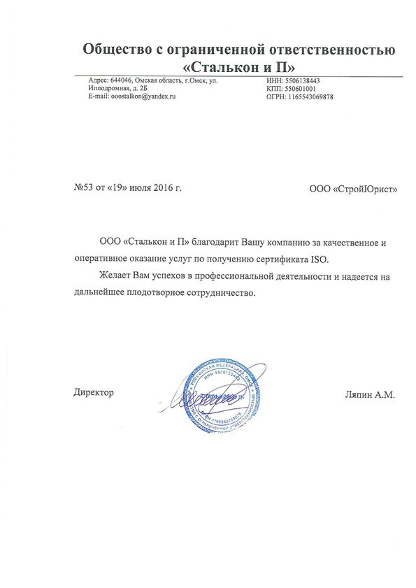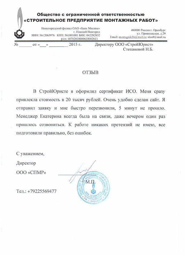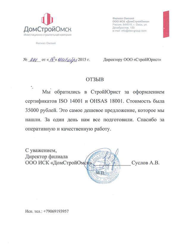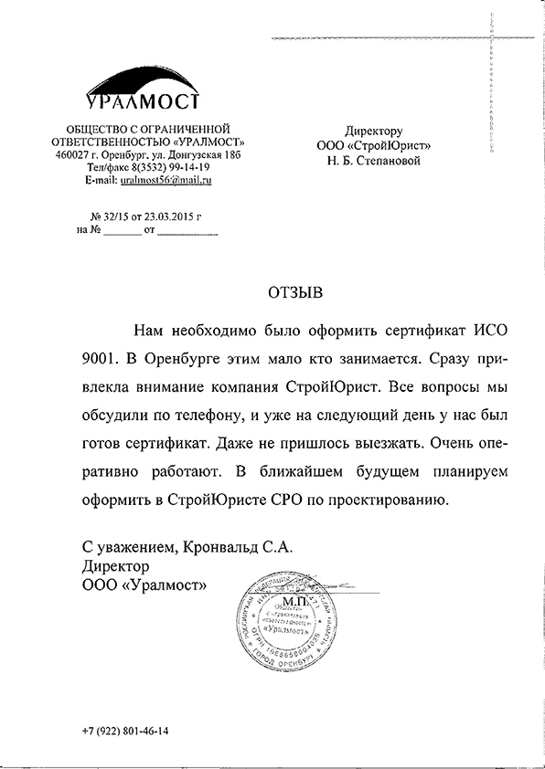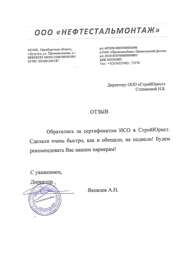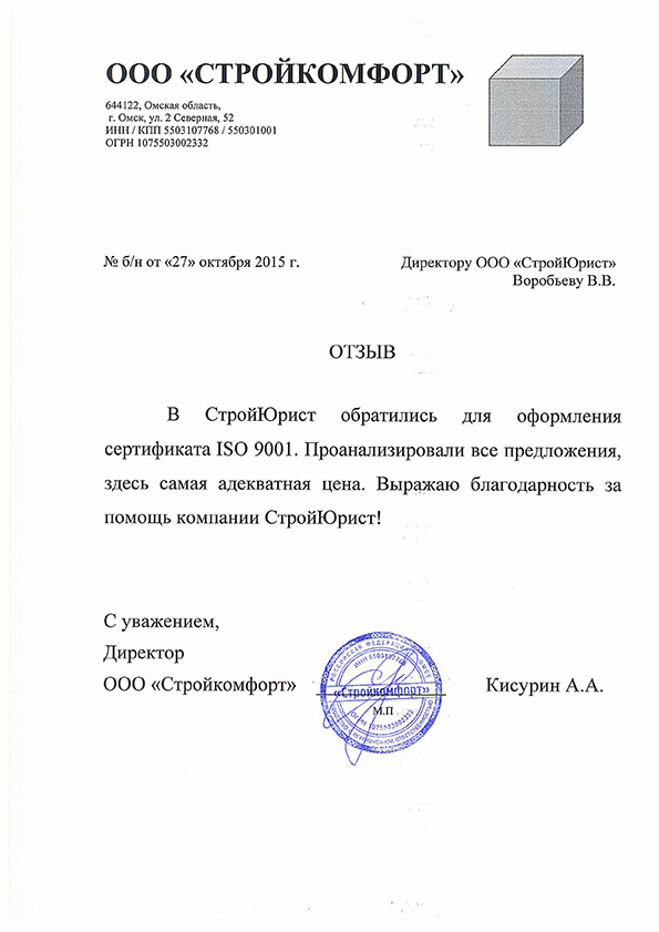Отзывы клиентов "СтройЮрист" по ISO в Обнинске