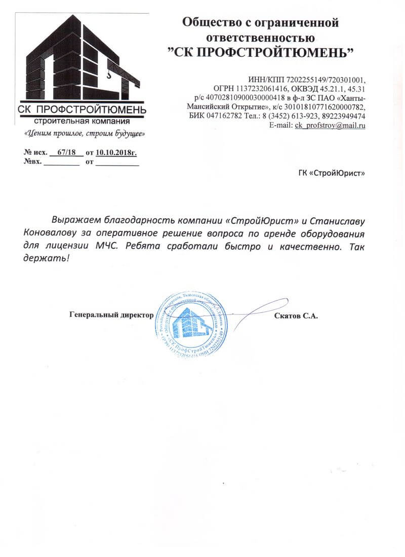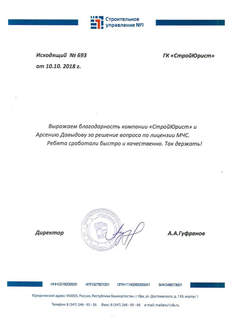 Отзывы клиентов "СтройЮрист" по лицензированию МЧС в Обнинске