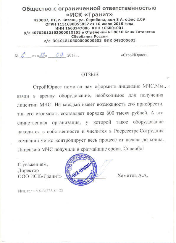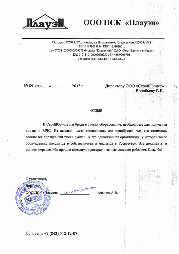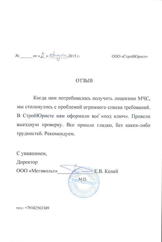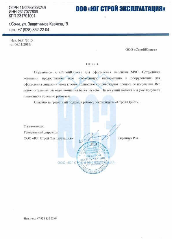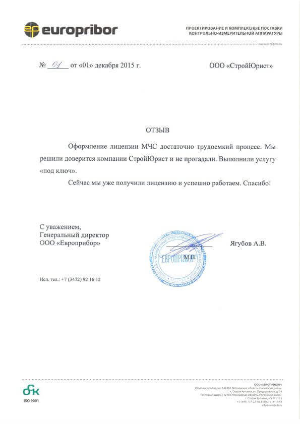 Отзывы клиентов "СтройЮрист" по лицензированию МЧС в Обнинске