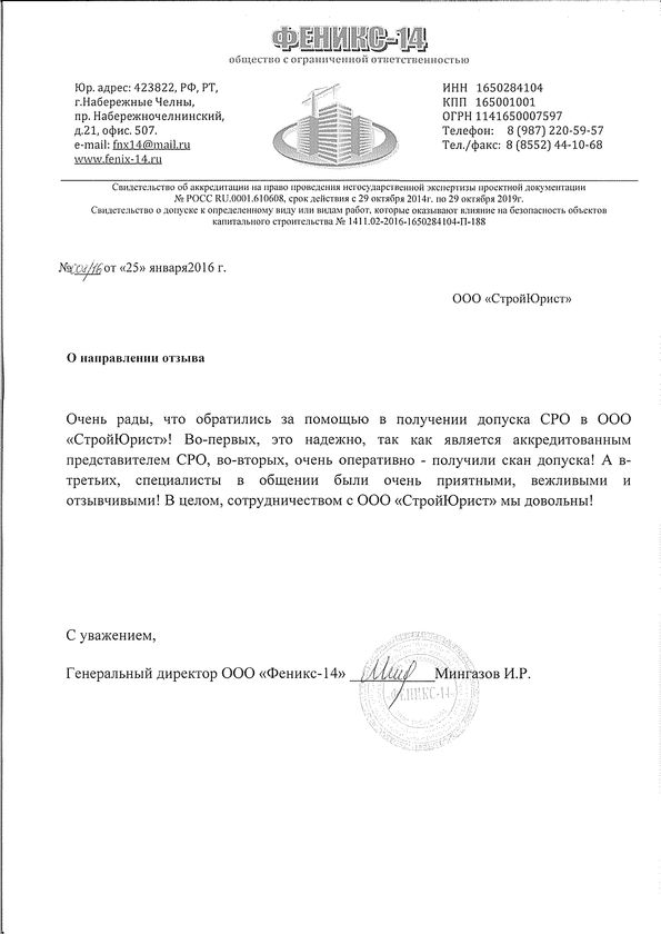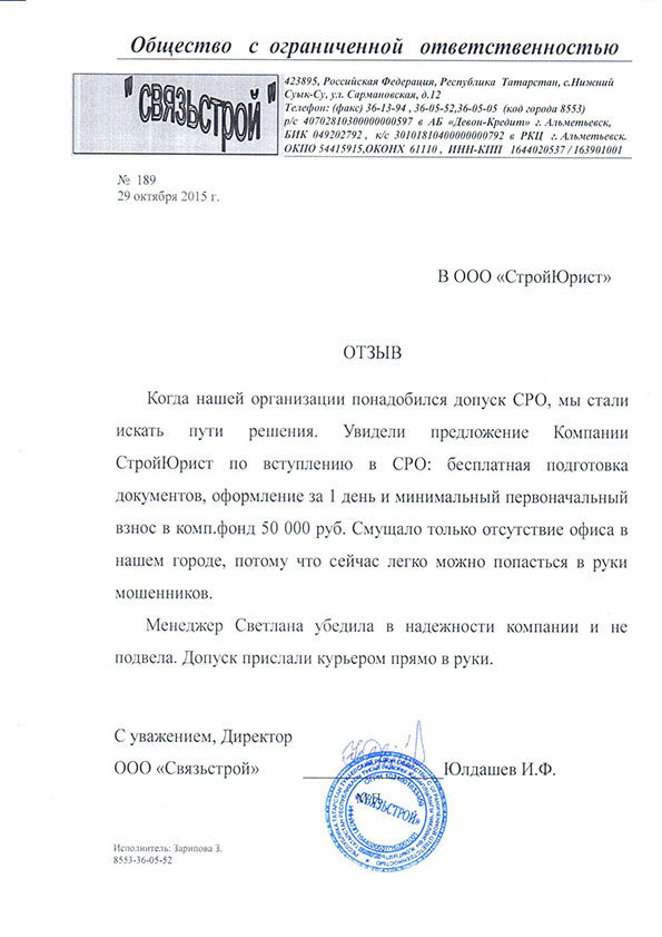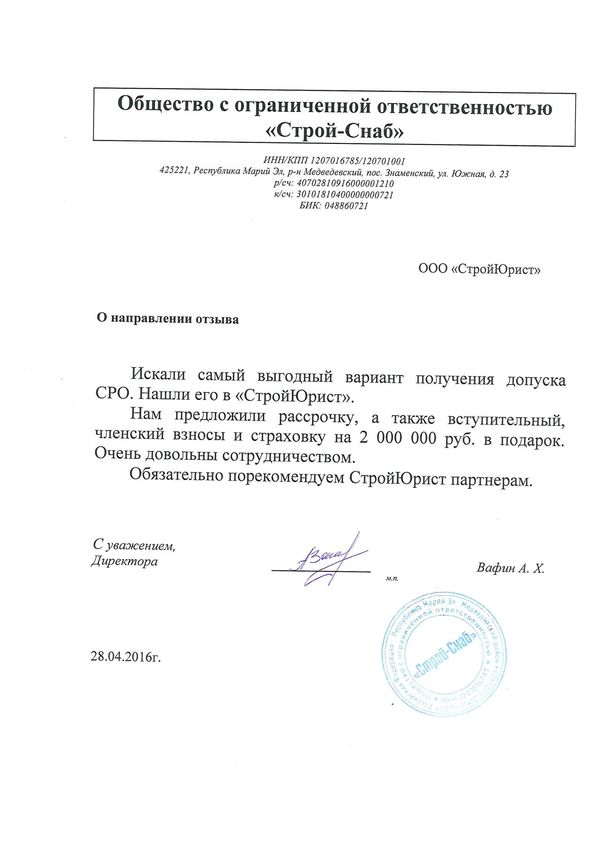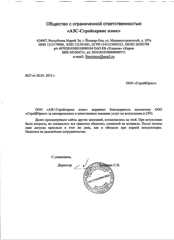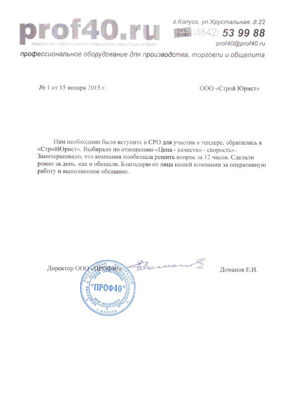 Отзывы клиентов "СтройЮрист" по вступлению в СРО в Обнинске