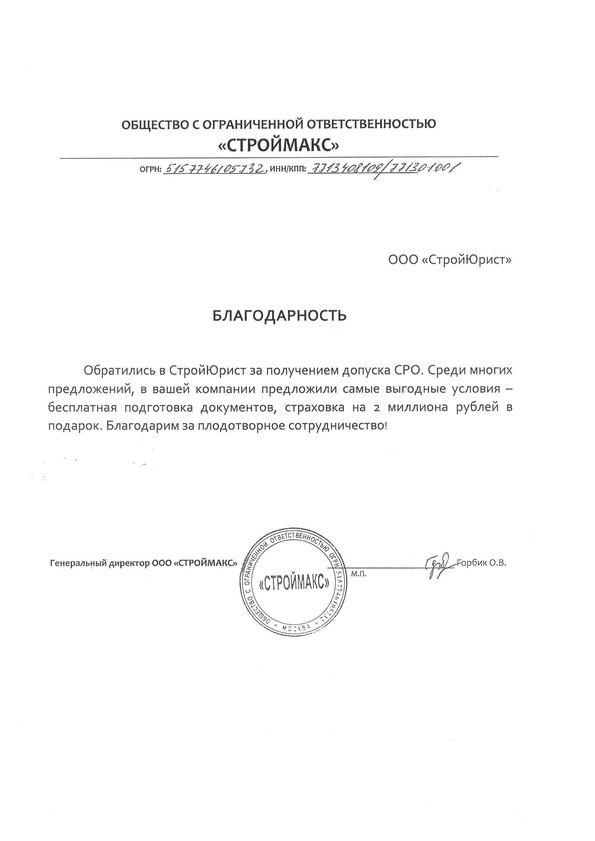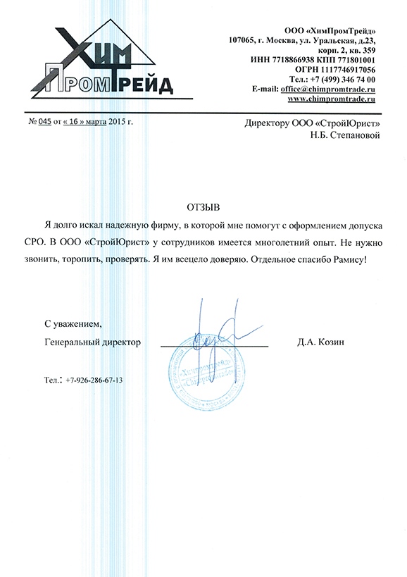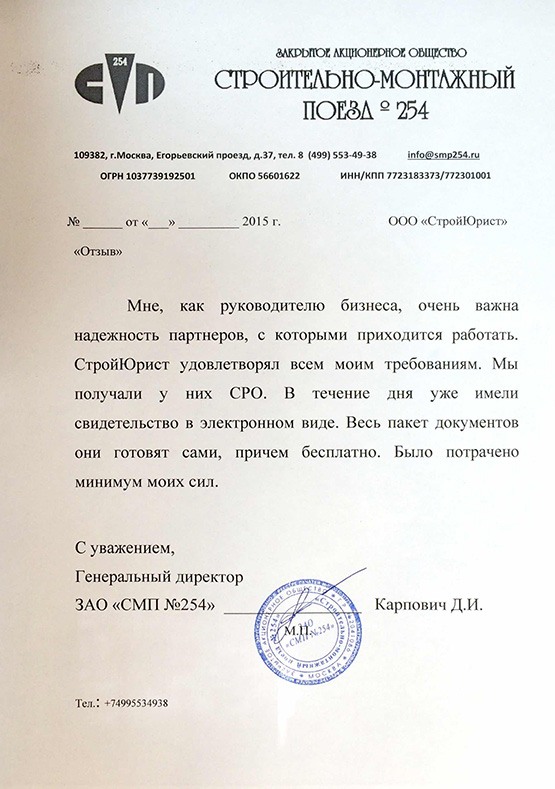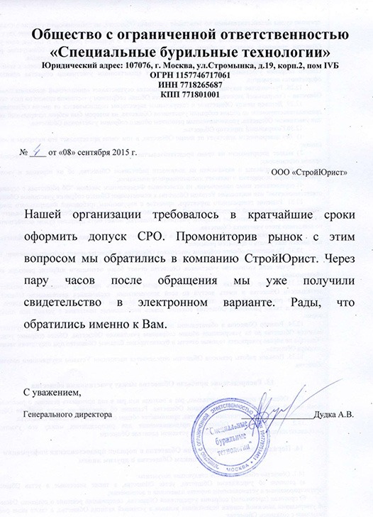 Отзывы клиентов "СтройЮрист" по вступлению в СРО в Обнинске