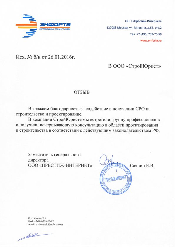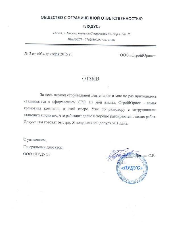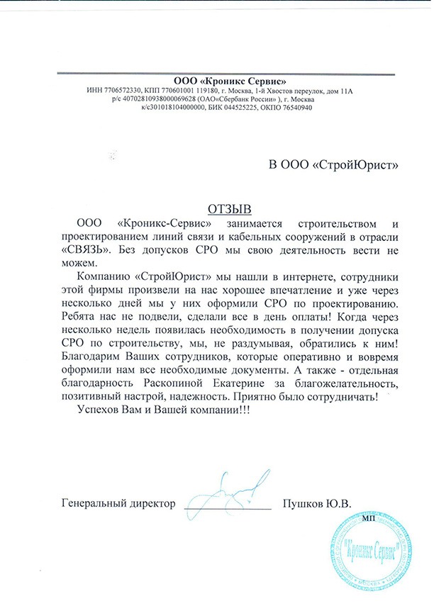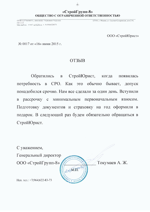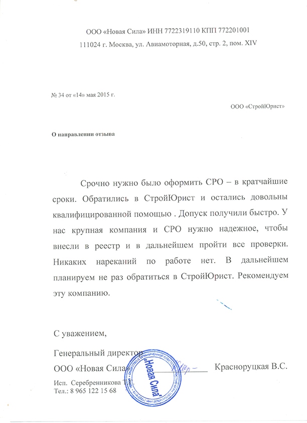Отзывы клиентов "СтройЮрист" по вступлению в СРО в Обнинске