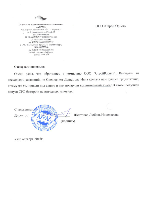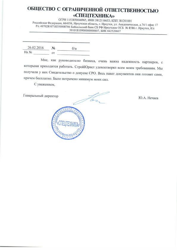 Отзывы клиентов "СтройЮрист" по вступлению в СРО в Обнинске