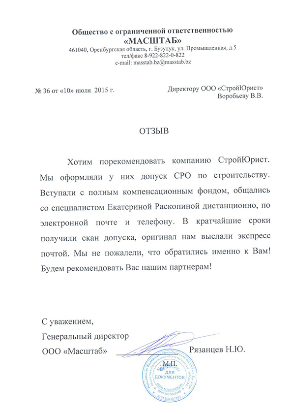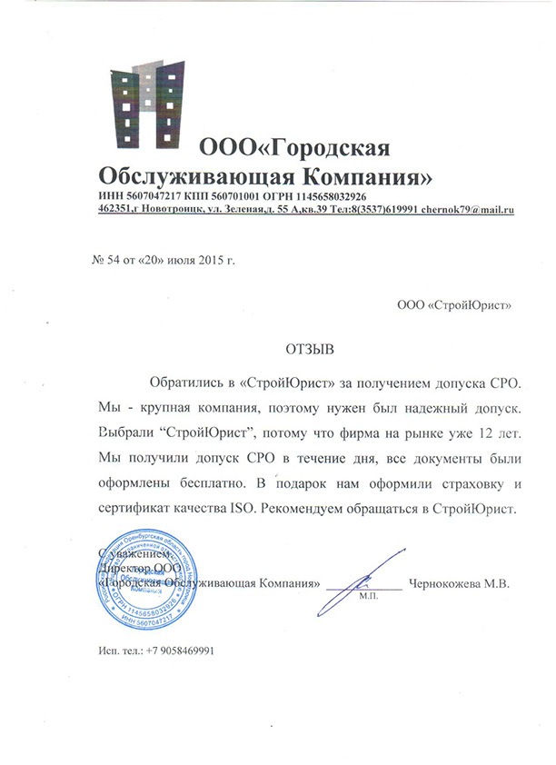 Отзывы клиентов "СтройЮрист" по вступлению в СРО в Обнинске