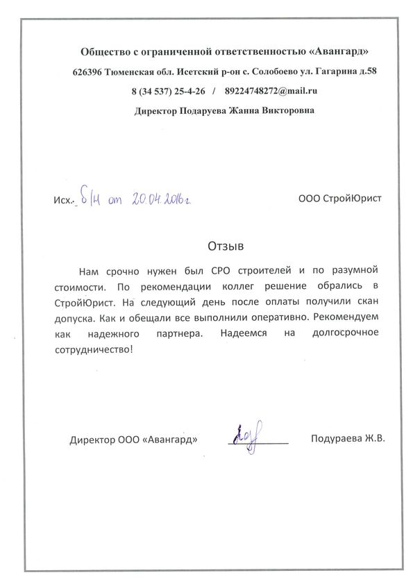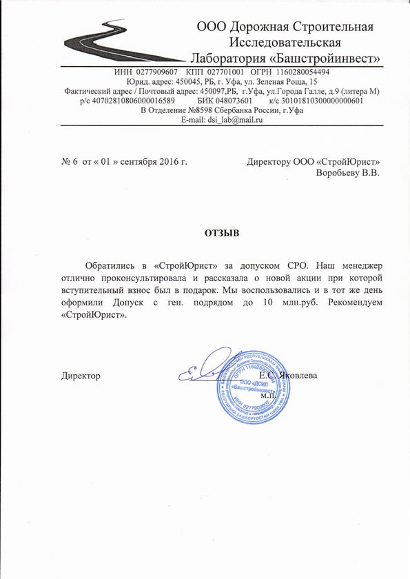 Отзывы клиентов "СтройЮрист" по вступлению в СРО в Обнинске