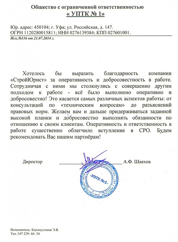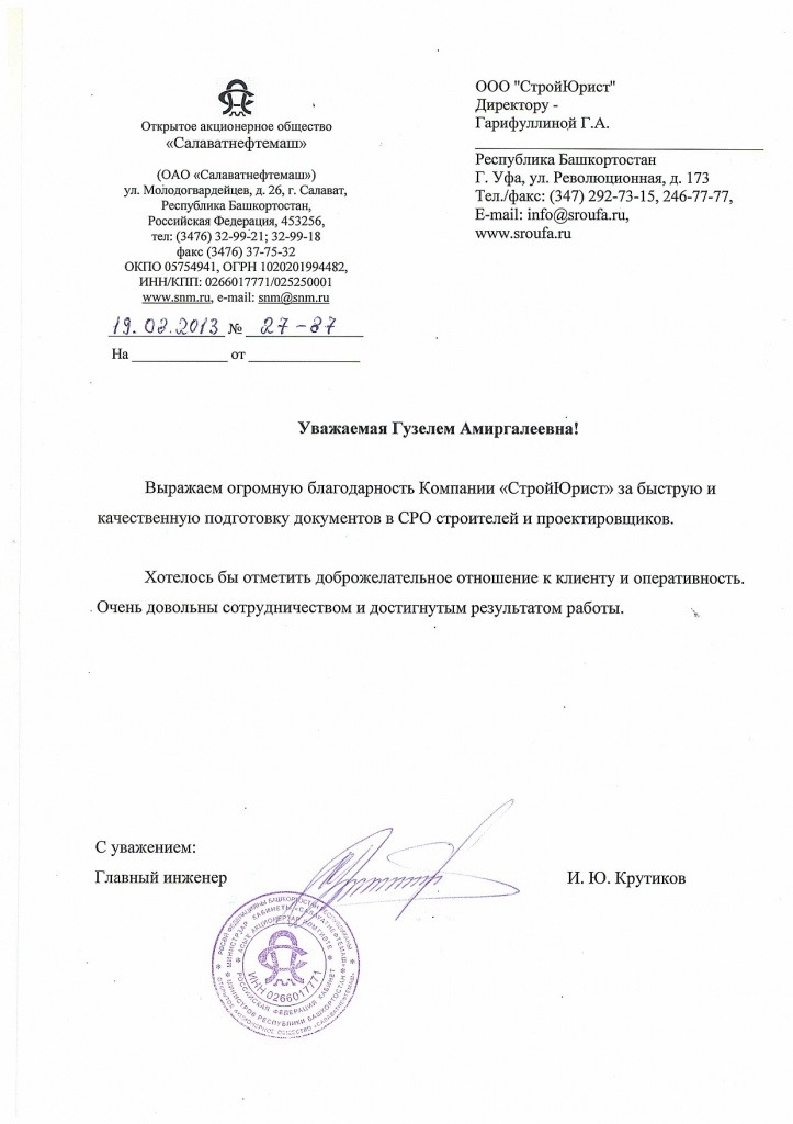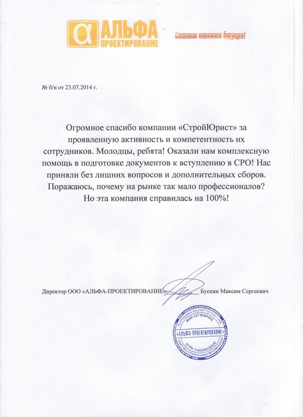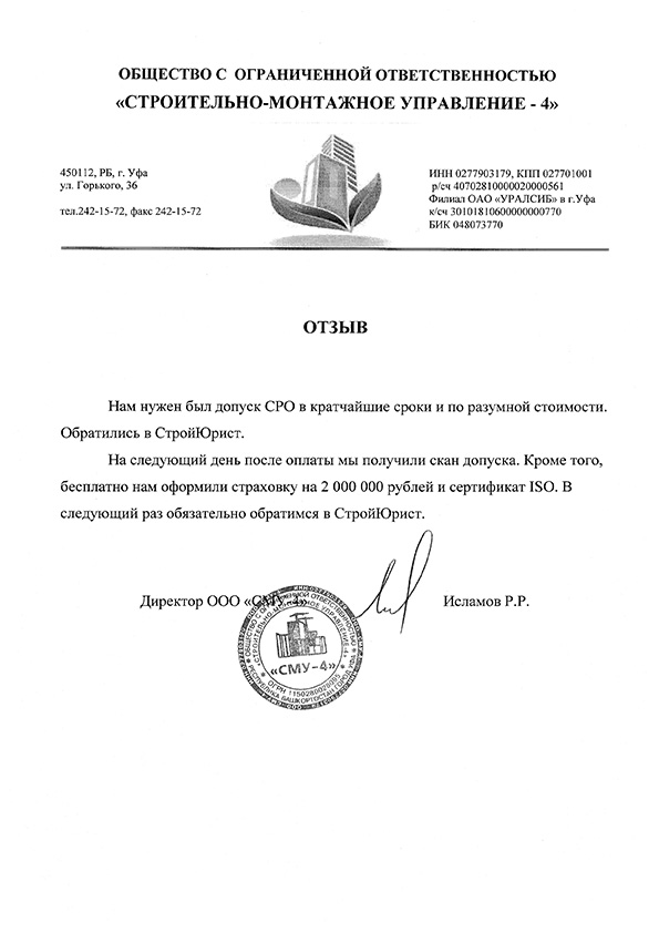 Отзывы клиентов "СтройЮрист" по вступлению в СРО в Обнинске