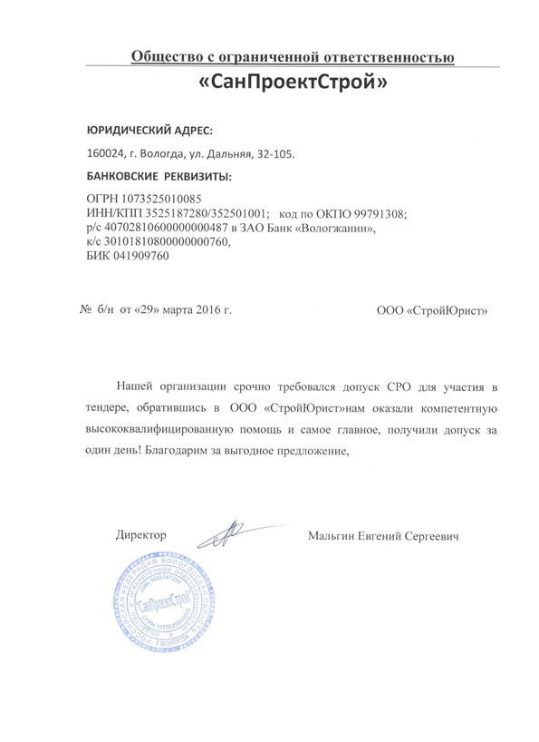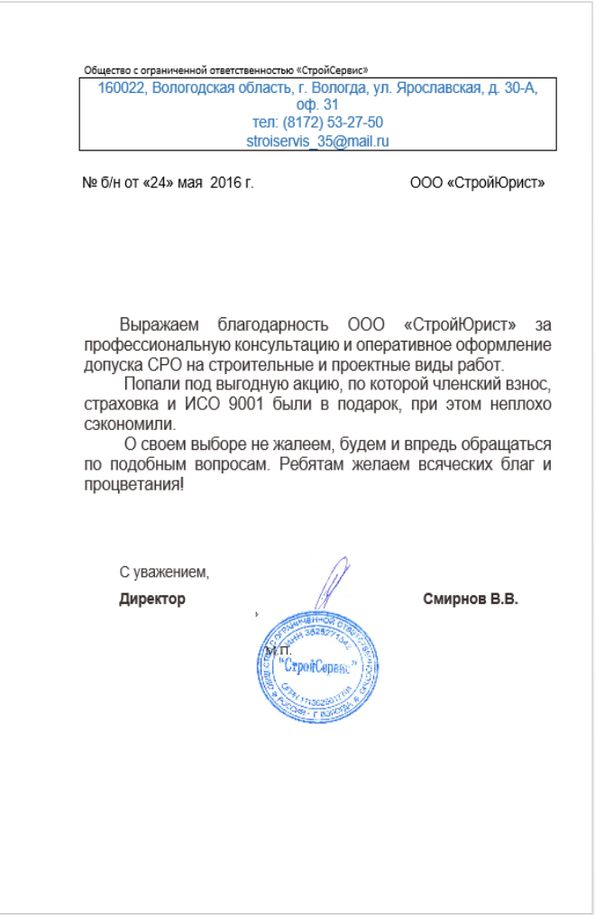 Отзывы клиентов "СтройЮрист" по вступлению в СРО в Обнинске